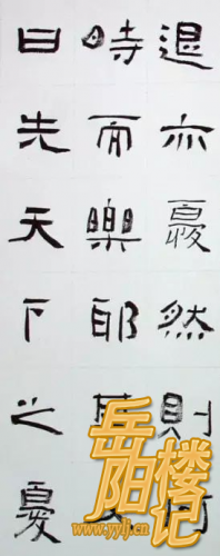 刘文华隶书《岳阳楼记》 刘文华,1955年生于北京。现为中国书法家协会理事、评委、隶书本委员会秘书长、中国书法家协会书法培训中心主任、首都师范大学客座教授。书法作品多次入选全国书法篆刻展及中青年书法篆刻家作品展。全国第四、五、六届书法展获"全国奖",第四、七届中青年书法篆刻家作品展获奖。八十年代以来,开始参与国内外各种艺术展事和活动。自八十年代中期,专职从事书法的教学、研究、管理工作,多次在国内举办个人展览,编写出版多种字帖、教材、教学光盘等。 上一篇:清代王澍楷书《岳阳楼记》欧体书法作品欣赏 下一篇:元代虞集隶书《岳阳楼记》 岳阳楼记隶书刘文华