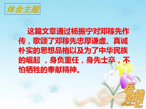 三、为中华民族的崛起,为广大人民的利益,奉献自己的一生,这是邓稼先的人生。走这样的人生道路,是邓稼先的性格与品质决定的。这两句话总写出了邓稼先的伟大之处,是对邓稼先的高度评价。