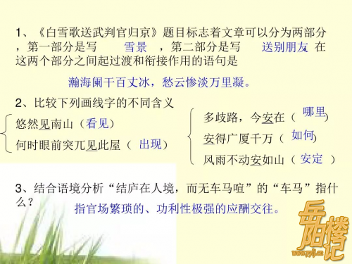 三、1.“会当凌绝顶,一览众山小”的意思是:我终要登上泰山的顶峰,站在山巅把那些渺小群山眺望。现在常用的意思是:不怕困难,敢于攀登,才能俯视一切,才能欣赏到绝美的风光。