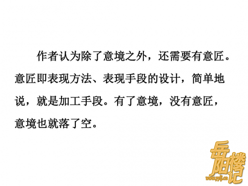 作者认为除了意境之外,还需要有意匠。意匠即表现方法、表现手段的设计,简单地说,就是加工手段。有了意境,没有意匠,意境也就落了空。