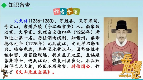 文天祥(1236—1283),吉州庐陵(今江西吉安)人,南宋政治家、文学家,抗元名臣、民族英雄,与陆秀夫、张世杰并称为“宋末三杰”。
