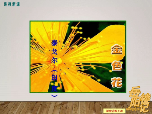 一、作者简介泰戈尔(1861-1941),印度作家、诗人、社会活动家。作品有长篇小说《小沙子》《沉船》《戈拉》,剧本《修道士》《国王和王后》《摩吉多塔拉》《邮局》,诗集《吉檀迦利》《新月集》《园丁集》《飞鸟集》等。获1913年诺贝尔文学奖。二、故事背景《金色花》一诗选自《泰戈尔诗选》。《金色花》是他的早期作品。这一时期,泰戈尔的创作往往“梦幻多于现实”,他本人幻想通过温和的宗教、哲学、教育和道德等手段来改造国民、改造社会,从而实现民族自治。