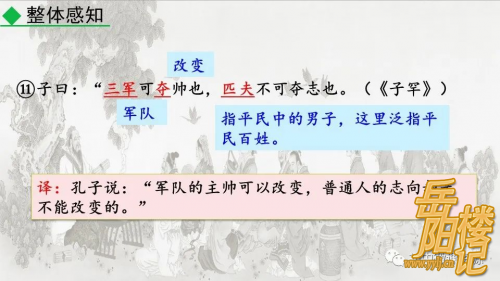 11.原文:子曰: “三军可夺帅也,匹夫不可夺志也。”(《子罕》)